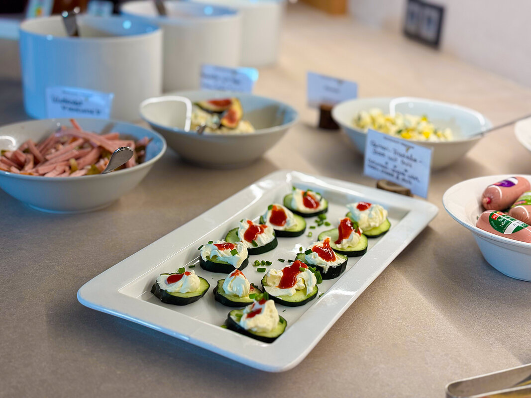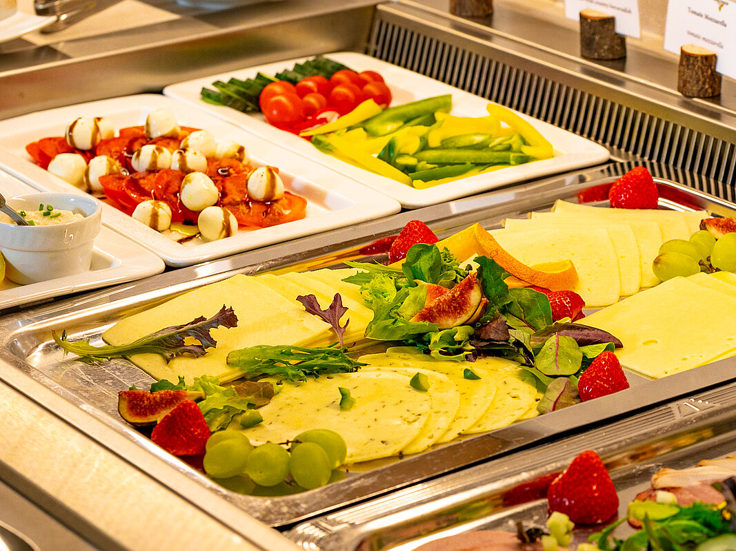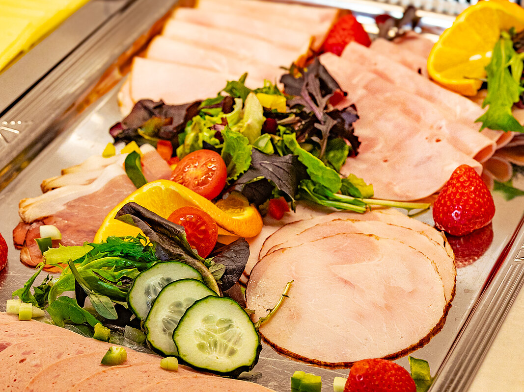 Freuen Sie sich auf frisch gebackene Brötchen und verschiedene Brotsorten sowie eine abwechslungsreiche Auswahl an feinem Käse und herzhaftem Aufschnitt.