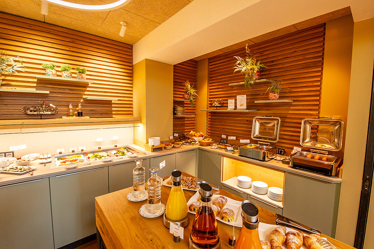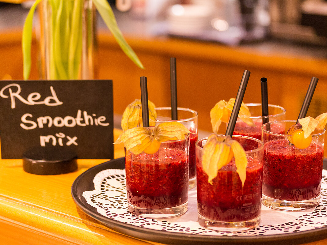 Wer den Morgen gern vital und ausgewogen beginnt, findet an unserer Station für Müsli, Obst und Säfte eine frische Auswahl für einen gelungenen Start in den Tag.